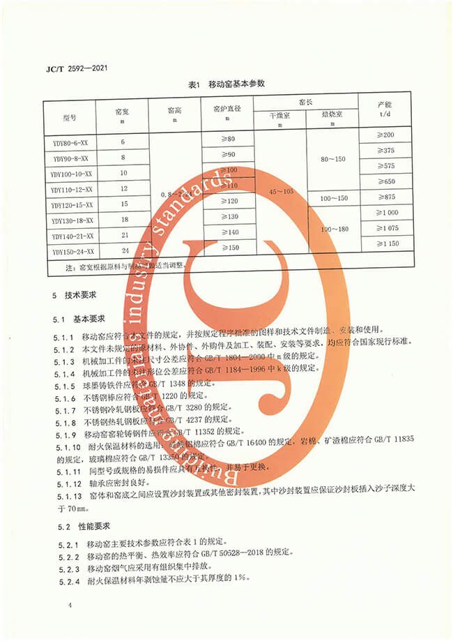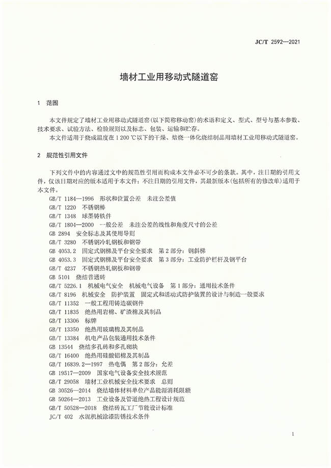 墻材用移動式隧道窯行業(yè)標(biāo)準(zhǔn)