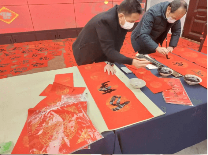 活動(dòng)最后,縣文聯(lián)邀請(qǐng)11名**書法家現(xiàn)場義寫春聯(lián),為亞新公司職工送來節(jié)日的問候。