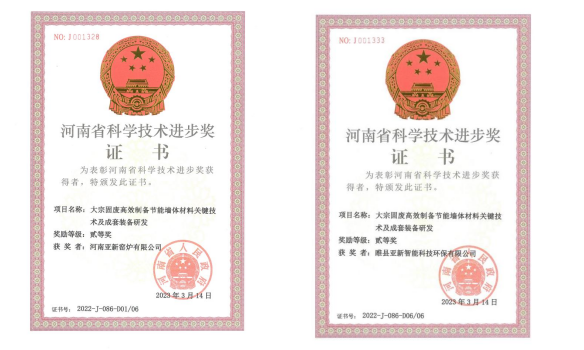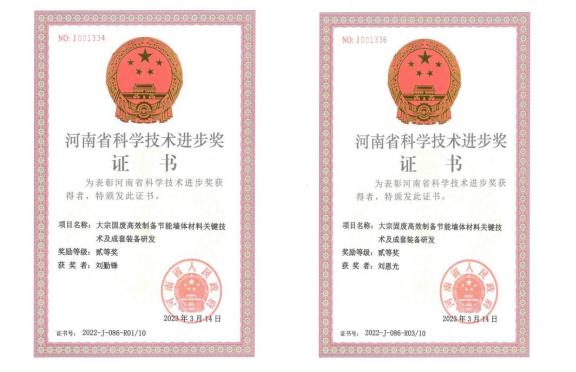 河南亞新窯爐有限公司/河南睢縣亞新智能科技環(huán)保有限公司的科研成果“大宗固廢高效制備節(jié)能墻體材料關鍵技術及成套裝備研發(fā)”喜獲“河南省科學技術進步二等獎”,此項目獲獎是河南亞新公司近年以來獲得的最高獎項,也是墻材行業(yè)唯一的一個裝備制造企業(yè)獲得的省級科學技術進步二等獎的企業(yè)。