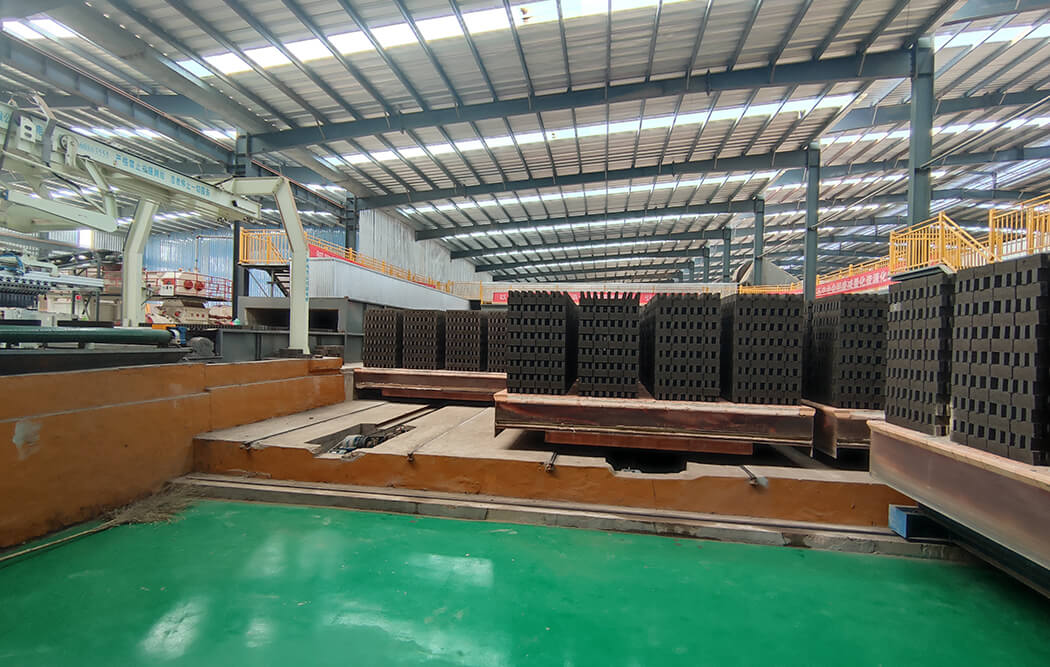 大斷面保證產量,降低行火速度保證質量,減少焙燒時的熱量需求,大大降低產品的綜合能耗,適當延長焙燒時 間,解決黑心磚和成品磚的粘連問題。