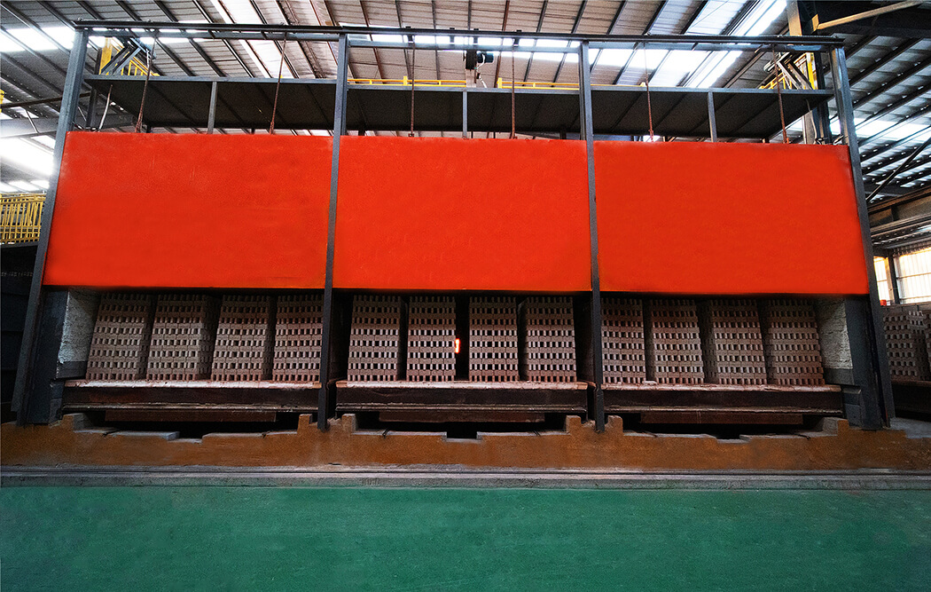 節(jié)能:省去多側面窯墻,減少每道側面窯墻8%的熱消耗,同等產量與單條隧道窯相比可降低30%熱量消耗,同時窯車之間采用雙道密封設計,確保窯爐運行平穩(wěn)可靠。